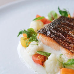 Pistachio Crusted Salmon & Tom Yum Gazpacho